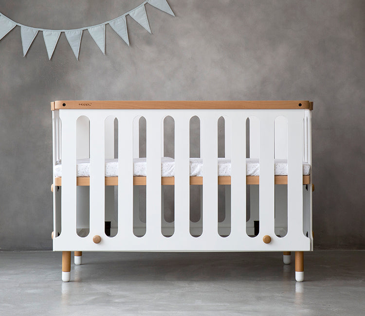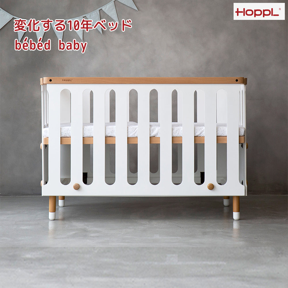 【正規品】HOPPL ホップル ベビーベッド 木製 組み替え可能 キッズベッド対応 新生児~5歳まで使える (キャスター別売)ナチュラルとホワイトの2色展開 PSC・SGマーク取得 出産祝い 贈り物に 添い寝ベッド 子供ベッド 一人寝デビュー 家具